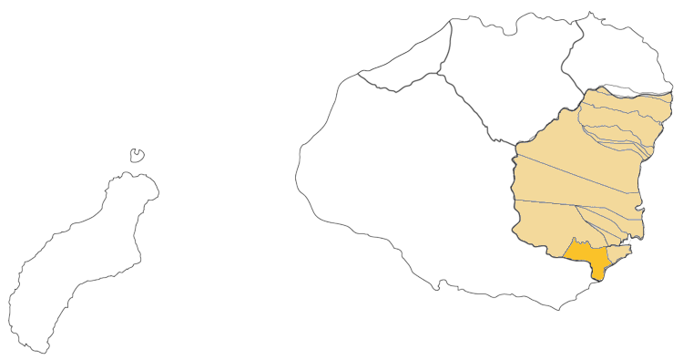 It straddles the Hā`upu mountain range and is divided in two parts, Kīpū-uka and Kīpū-kai. Hā`upu peak dominates the land.