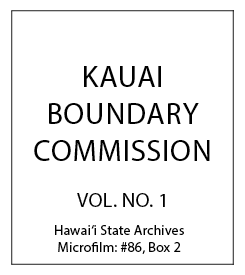 Kauai Boundary Commission Vol 1, No 1. Hawaii State Archives